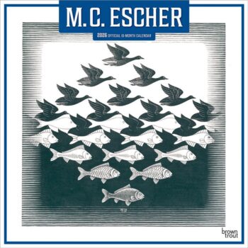 The M.C. Escher Official 2026 Wall Calendar highlights the Dutch artist’s mathematically inspired works, including iconic lithographs, woodcuts, and mezzotints. Escher’s art bridges science and creativity, appealing to mathematicians, architects, artists, and pop culture enthusiasts alike.